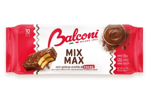 Balconi piškotové dortíčky s kakaovou náplní a kakaovou polevou 10 ks po 35 g, celkem 350 g.