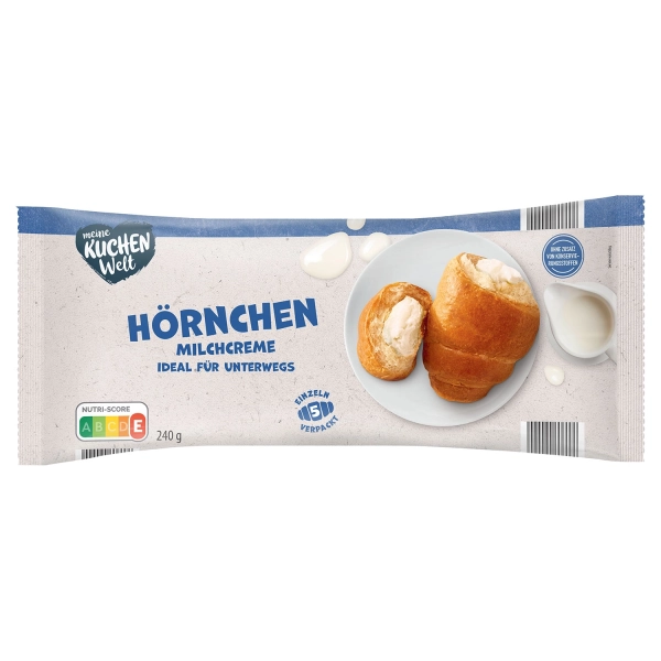 MEINE KUCHENWELT croissanty plněné mléčným krémem 240 g, 5 ks. Jednotlivě balené.