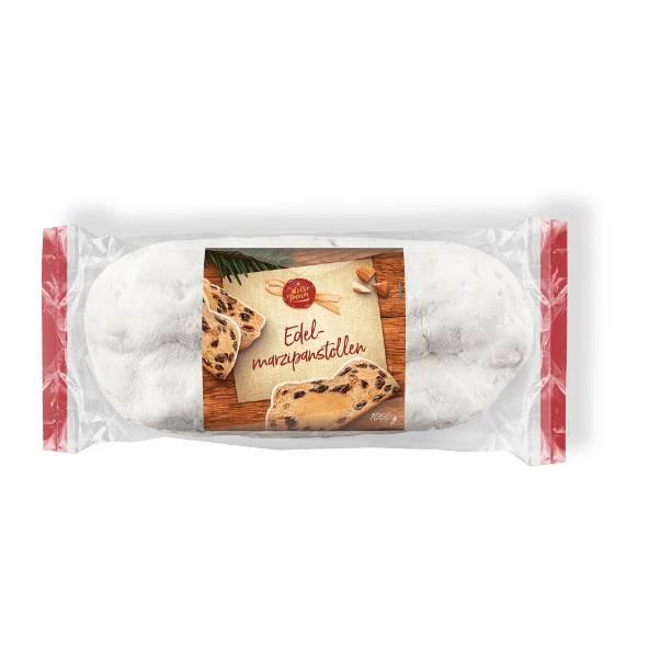 Wintertraum vánoční štola marcipánová 1000 g. Plněná marcipánem, sultánkami a ovocnou pomerančovou kůrou a citronovou kůrou. Dovezeno z Německa.